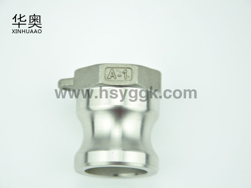 不銹鋼快速接頭A型:一端是卡在母頭里的圓弧接頭,一端是內(nèi)螺紋的連接的絲扣。